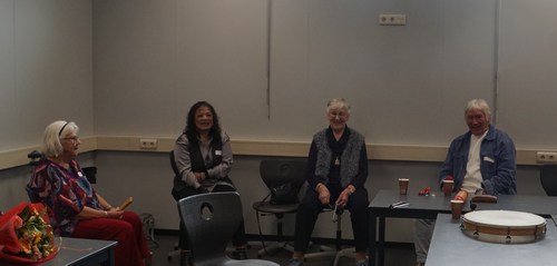 Na deze serieuze presentatie, is het tijd voor een optreden van Leon Moorman. Hij weet met zijn repertoire in streektaal de mensen te raken.De studenten staan met een hapje en een drankje klaar. Alle mantelzorgers krijgen een mantelzorglintje en van SWW een dopper.