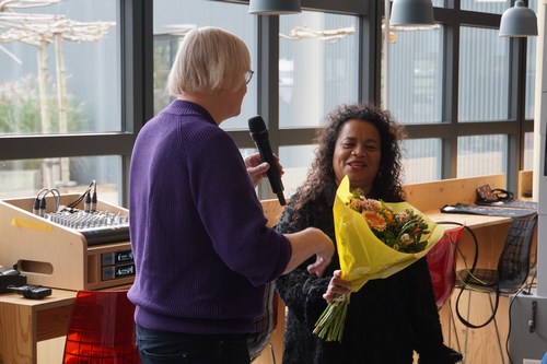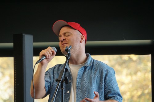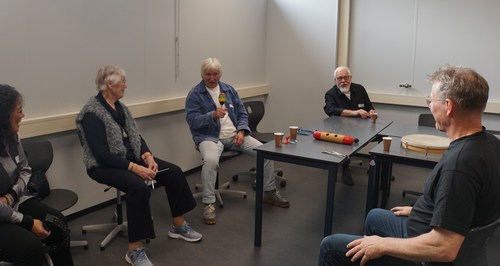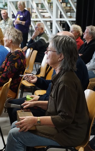 Na deze serieuze presentatie, is het tijd voor een optreden van Leon Moorman. Hij weet met zijn repertoire in streektaal de mensen te raken.De studenten staan met een hapje en een drankje klaar. Alle mantelzorgers krijgen een mantelzorglintje en van SWW een dopper.