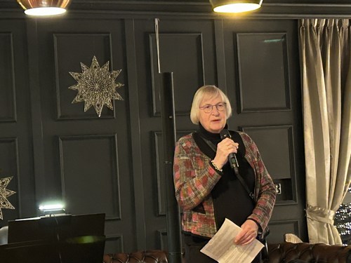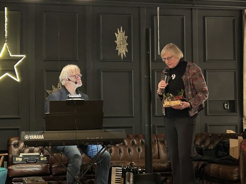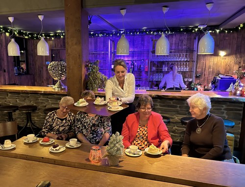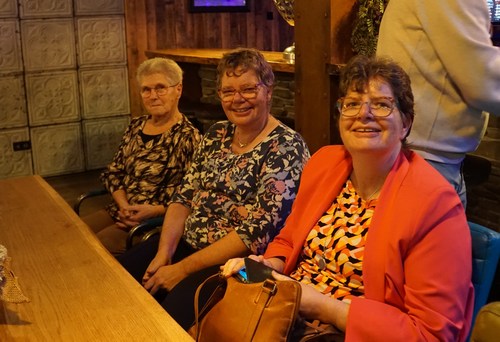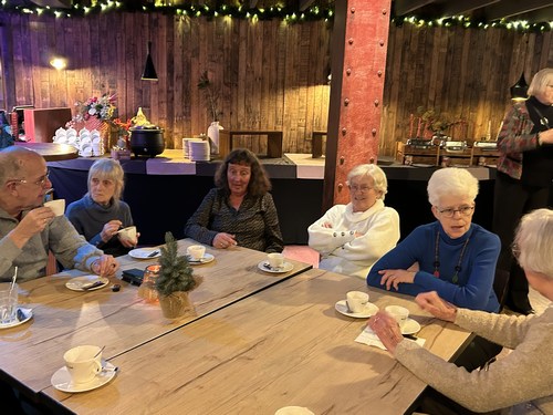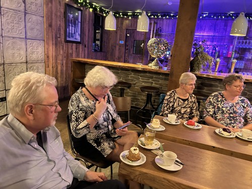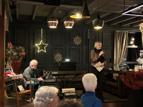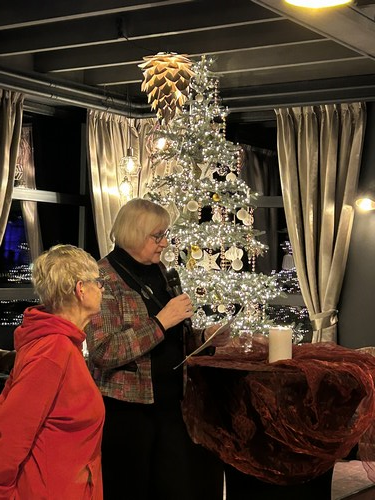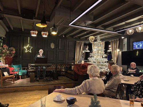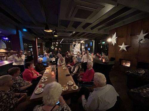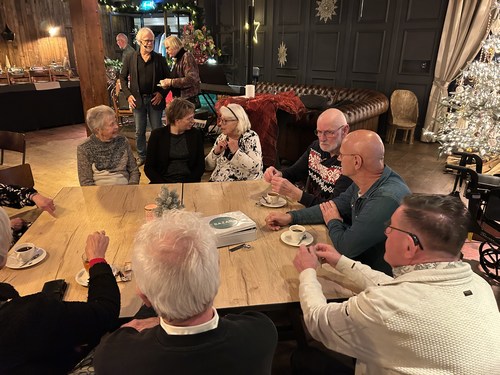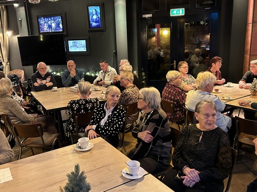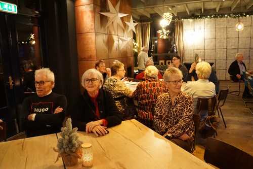 Gezelligheid kent geen tijd, en dan is het alweer tijd om af te sluiten, Else bedankt Andries voor zijn afwisselende inbreng. Hij mag een kersttulband in ontvangst nemen, om thuis na te genieten.