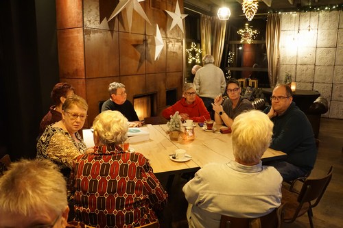 Als iedereen voorzien is van koffie/thee met gebak, spreekt Else Nobel het welkomstwoord. Op de grens van het oude jaar, denken we aan de mensen van wie we dit jaar afscheid moesten nemen. In verbondenheid met hen steekt Marja Schipper de kaars aan, terwijl Else daarbij passende woorden spreekt.
